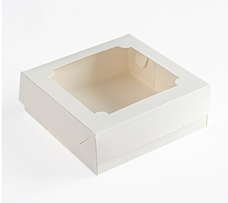 Коробка картонная с прозрачным пластиковым окном для упаковки зефира и других кондитерских изделий.