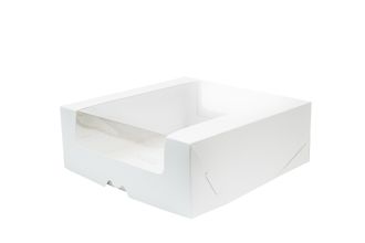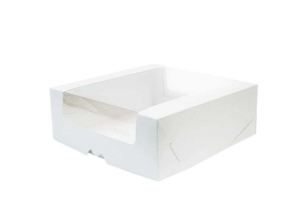 Коробка картонная с окном для упаковки торта, пряников, печенья, конфет, зефира, безе и других кондитерских изделий.