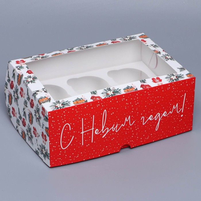 Коробка на 6 капкейков с окном «Хугге», 25 х 17 х 10 см